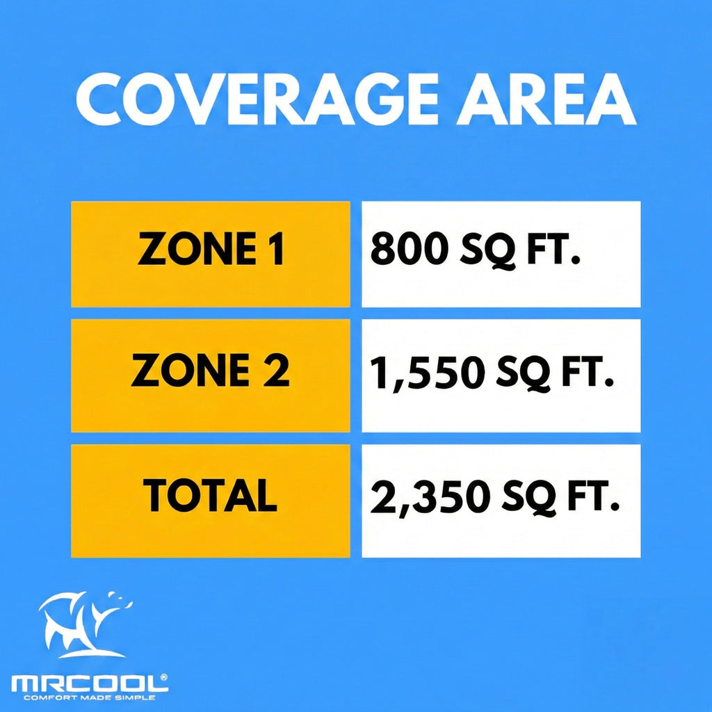 Heat or cool two rooms with the MRCOOL DIY Multi-Zone 48,000 BTU 22 SEER 2 Zone Ductless Heat Pump Split System - 18K + 36K. This DIY Series multi-zone product features easy installation that requires no special tools or training. You'll save thousands of dollars on installation and you can get the amazing air comfort of your dreams due to the condenser’s 48,000 BTU capacity. This units consists of an 18,000 btu air handler (800 square feet) and one 36,000 btu (1650 square feet). A heat pump by design, this ductless HVAC solution can run in reverse and pull in heat from the outdoors when in a heating mode. It comes with a 7 year compressor warranty, (Plus a limited lifetime compressor warranty), 5 year parts manufacturer warranty!