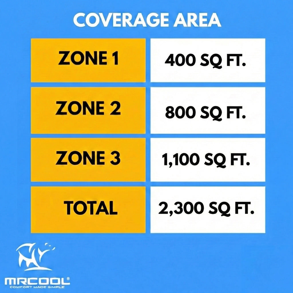 Heat or cool three zones with the MRCOOL DIY Multi-Zone 55,000 BTU 22 SEER2 3 Zone Ductless Heat Pump Split System – 9k + 18k + 24k. This DIY Series multi-zone product features easy installation that requires no special tools or training. You'll save thousands of dollars on installation and you can get the amazing air comfort of your dreams due to the condenser’s 55,000 BTU capacity.