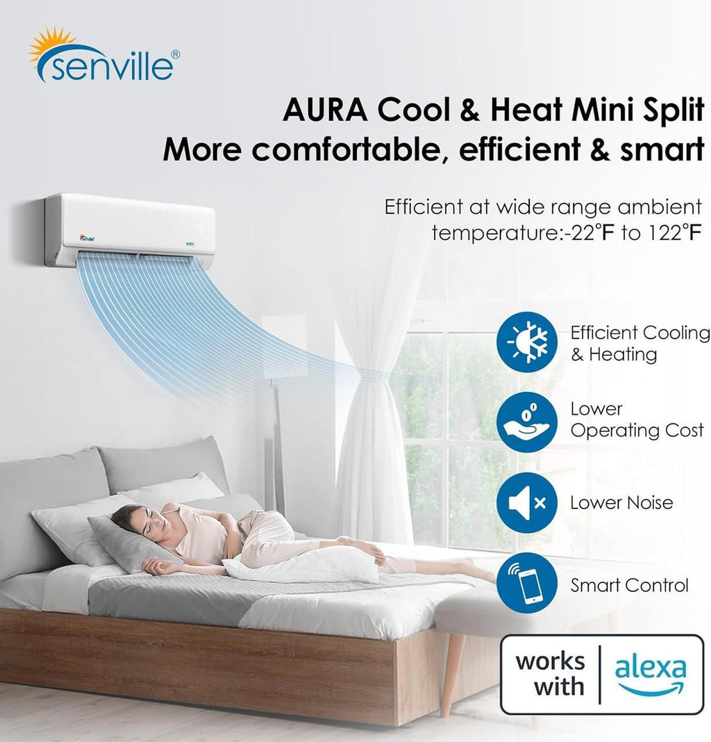 Senville AURA 15,000 BTU Single Zone Ductless Mini Split - 230V - 23.5 SEER2 - Energy Star